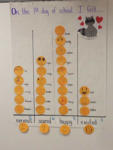 Then we were able to read The Kissing Hand. We discussed how we felt on the first day of school and made a graph.